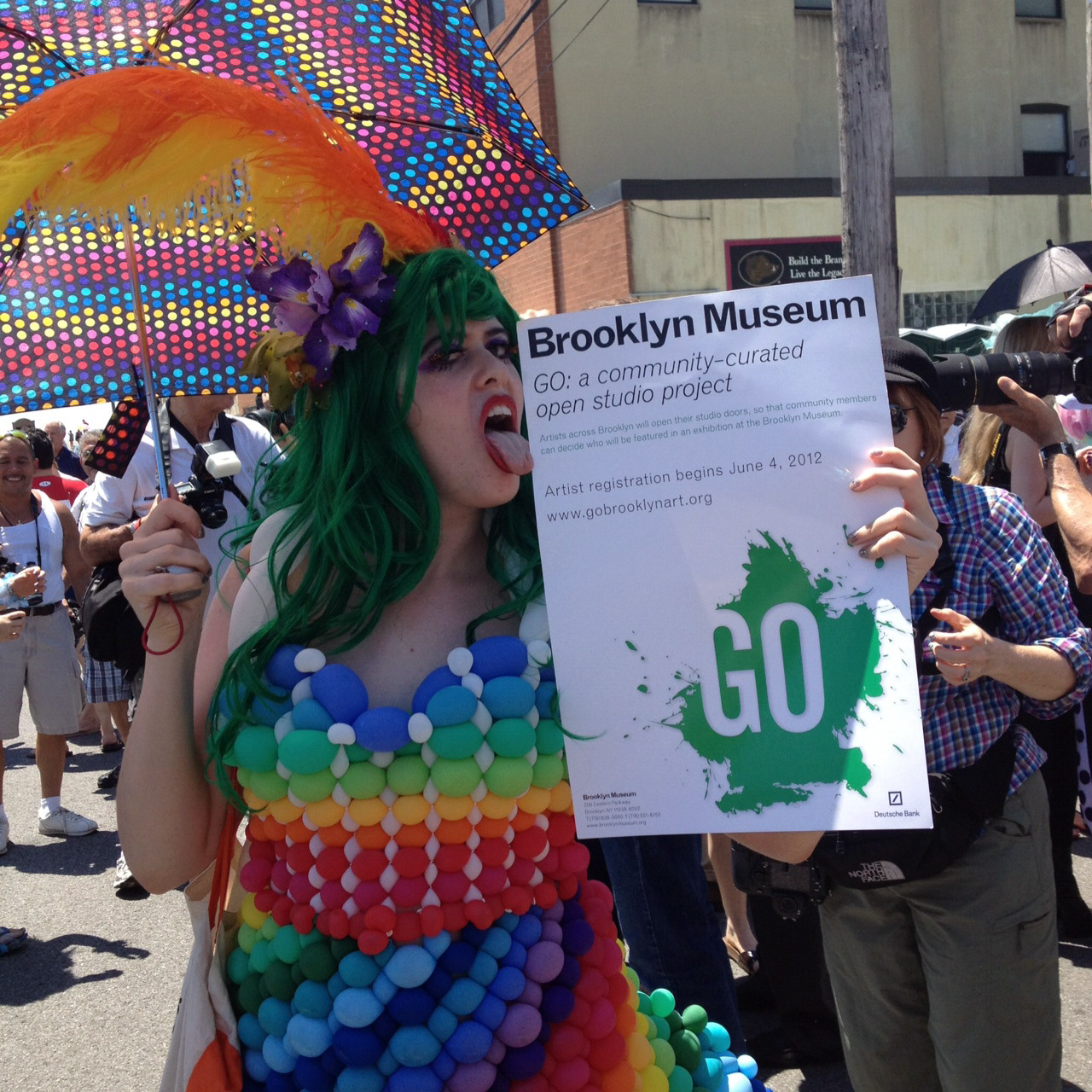 Go: a community-curated open studio project. Photos include the logo out in the wild on pieces designed by the current Brooklyn Museum design team. Photos are all from gobrooklynart.tumblr.com
